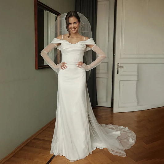 Modern A-Line Wedding Dress Minimalist Simple Satin Bridal Dress Back See Through Evening Gowns vestido de noiva