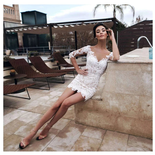 Sexy Short Wedding Dress Sweetheart Full Sleeves Lace Appliqued Bridal Bride Party Gowns Vestidos De Noiva