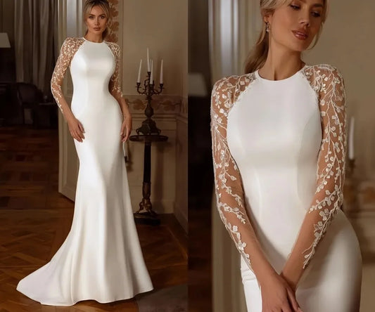 Sexy Mermaid Wedding Dress 2026 Sheer Neck Long Sleeves Illusion Back Buttons Lace Applique Bride Bridal Gowns vestido de novia