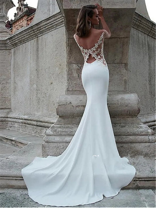 Sexy Mermaid Wedding Dress Bateau Neck Cutout Side Open Back Soft Satin Bridal Gown Elegant Bridal Dress Brides Vestido De Noiva