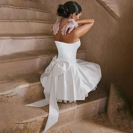 A-Line Short Wedding Dresses Sweetheart Pleats Brides Party Gowns for Women Summer Beach Country with Big Bow Vestido De Novia