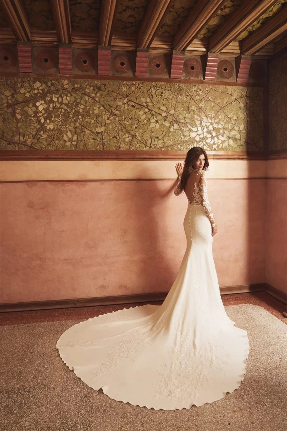 2026 Sexy Mermaid Wedding Dress O-neck Lace Appliques Illusion Buttons Back Women Brides Bridal Dress Vestidos De Noiva
