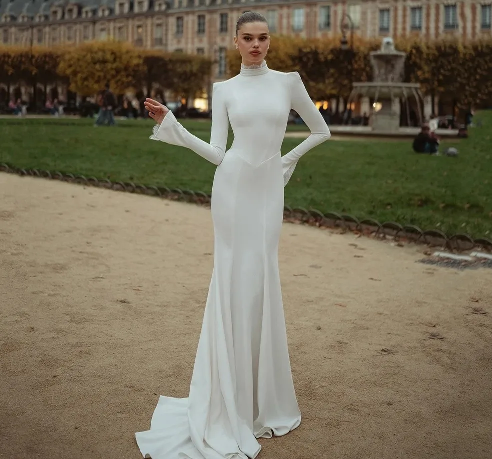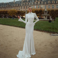 2026 Simple Modest Long Sleeve Wedding Dress High Neck Mermaid Floor Length Lace Women Brides Bridal Dress Vestidos De Noiva