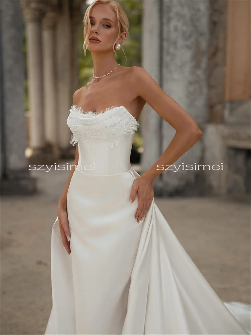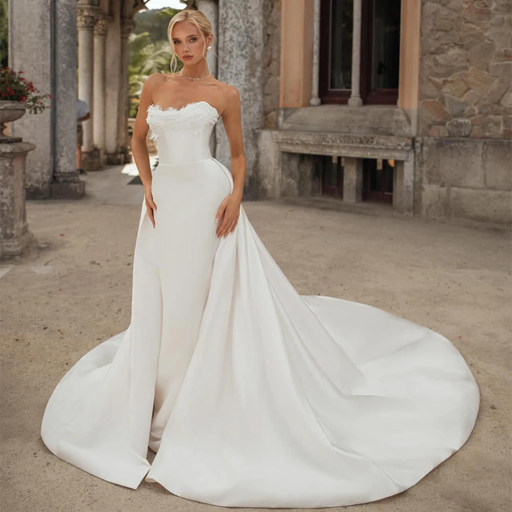 Customized Luxury Mermaid Satin Wedding Dress Beach Bridal Dresses Removable Train Evening Dress vestidos de novia