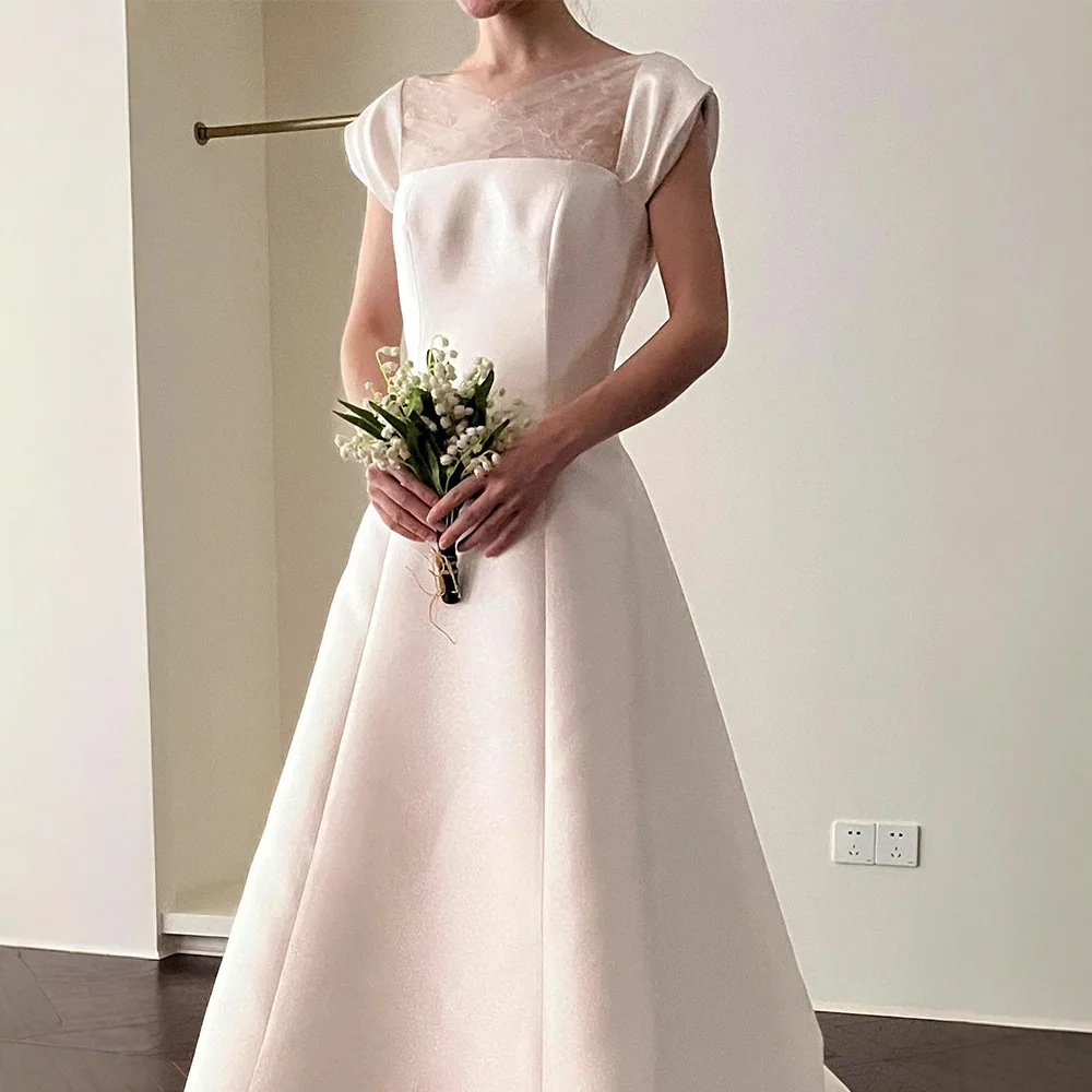 Elegant Classic A-line Wedding Dress Scoop Lace Appliques Satin Princess Bridal Gowns Bride Dresses Vestidos De Noiva