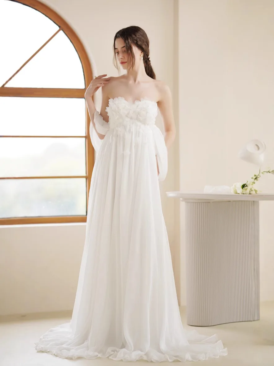 Elegant Maternity Wedding Dress Sweetheart 3D Flowers Lace Empire Bridal Gowns For Pragnant Brides Vestidos De Noiva