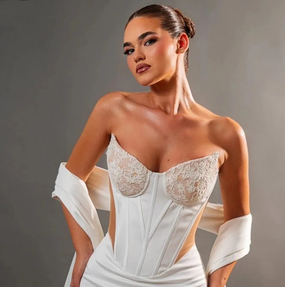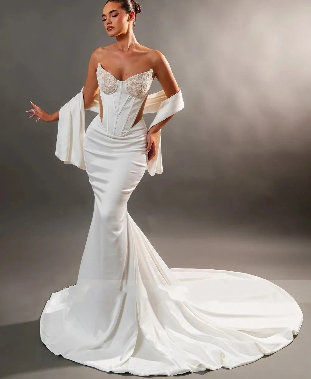 Elegant Mermaid Wedding Dress Strapless Lace Appliques Cut-Out Sleeveless Bridal Dresses Bride Gown vestidos de novia