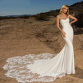 Fancy Satin Wedding Dresses for Bride Strapless Lace Appliques Sleeveless Mermaid Sweep Train Beach Boho Vestidos De Novia