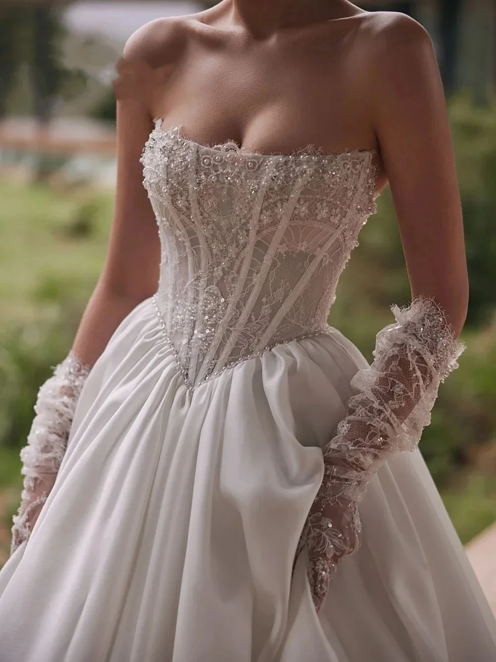 Luxurious A-line Wedding Dresses 2026 Strapless Beaded Pearls Lace Court Train Bridal Gowns Dress Vestidos De Noiva