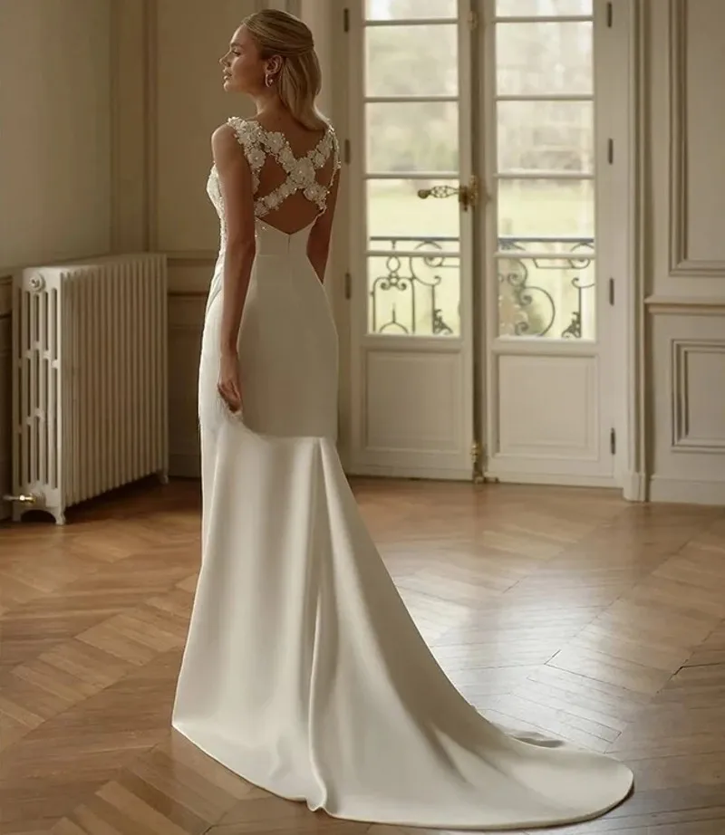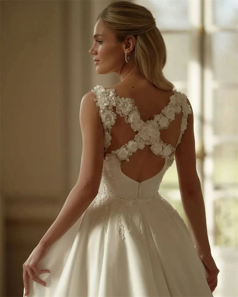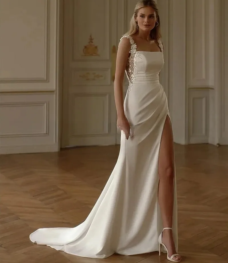 Luxury A-line Wedding Dresses Straps Flowers Lace Appliques Side Split Satin Formal Bridal Gowns 2026 Vestidos De Novias