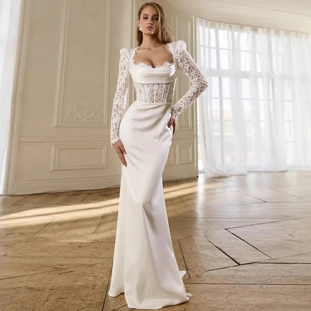 Moden Mermaid Wedding Dress Mermaid Bridal Gown 2026 Sweetheart Long Sleeves Pleat Sequined Lace Bride Dresses Robe Mariage
