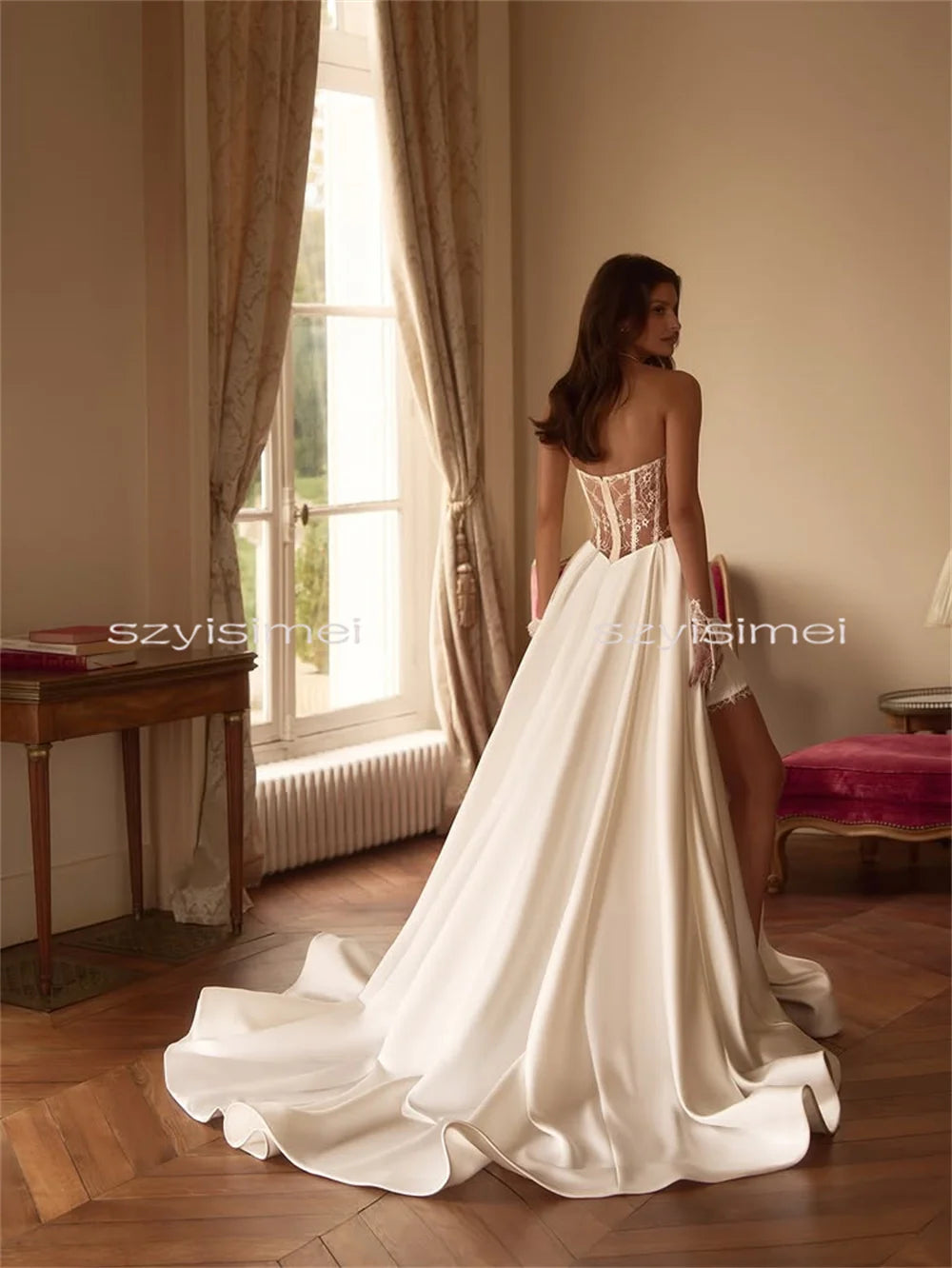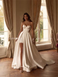 Modern A-Line Wedding Dress Minimalist Simple Satin Bridal Dress Back See Through Evening Gowns vestido de noiva