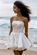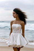 New Arrival Short Beach Wedding Dress Strapless Crystal Lace Up Satin Mini Bridal Party Gowns Vestidos De Noiva