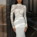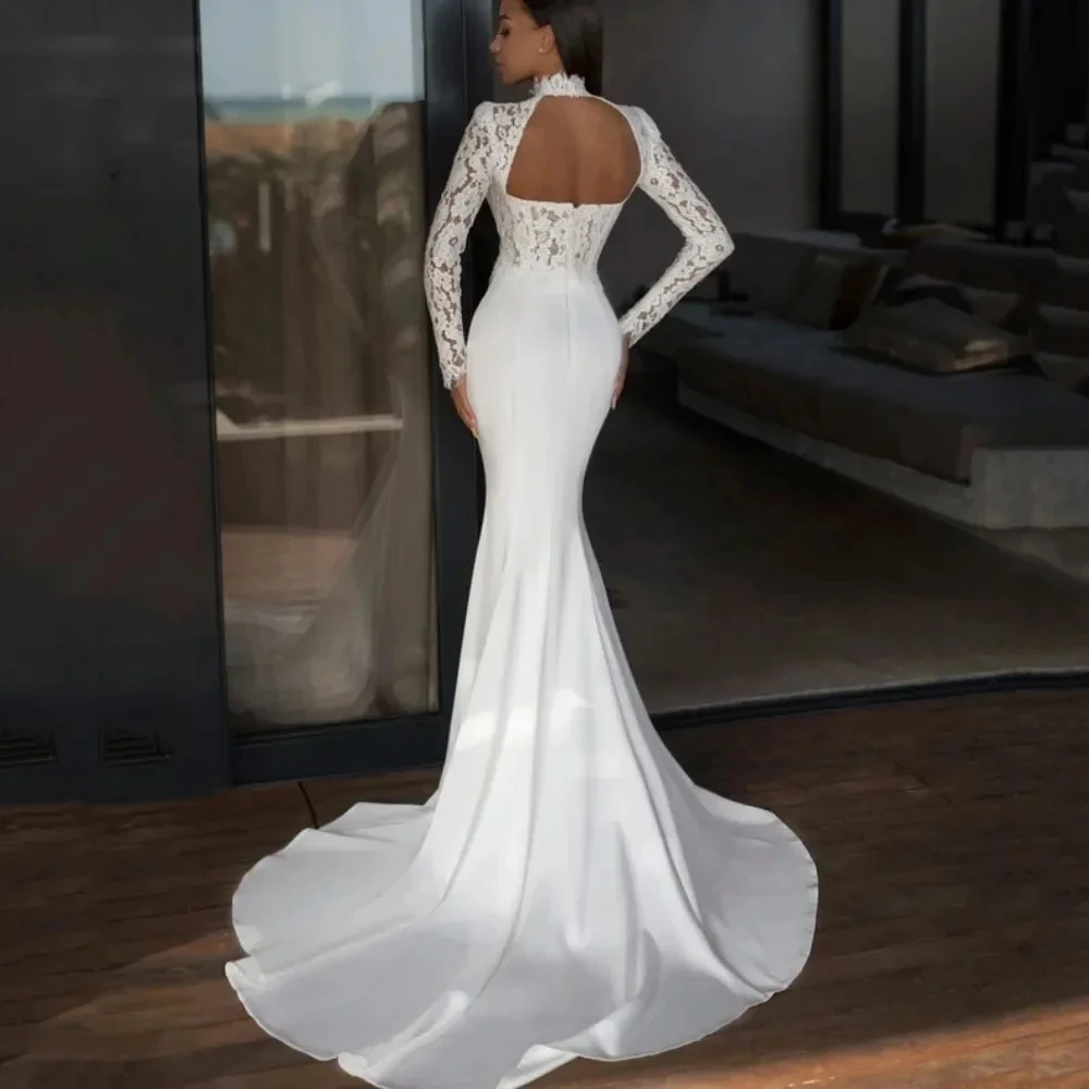 New Arrival Wedding Dress High Neck Long Sleeves Top Lace Satin Mermaid Bride Dresses Bridal Gowns Vestidos De Noiva