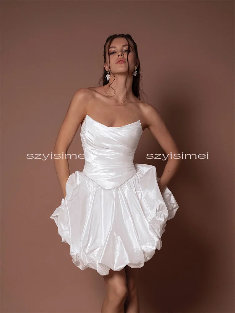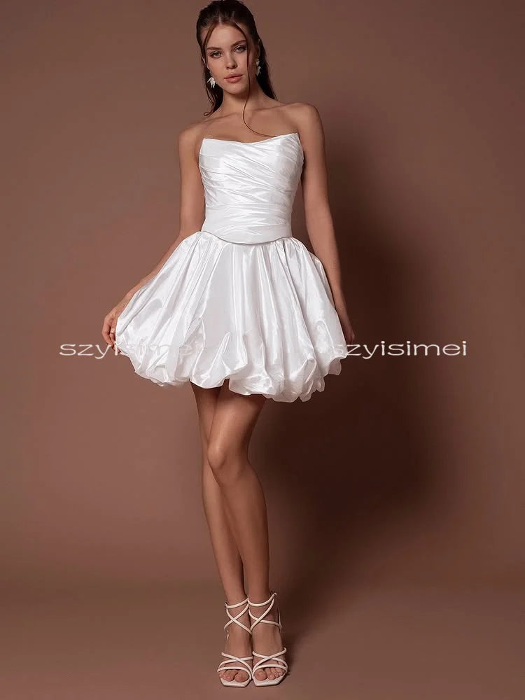 Newest Satin Women Sexy Sleeveless Prom Dress For Wedding Short A line Bridal Dresses 2026 Backless Evening Gown