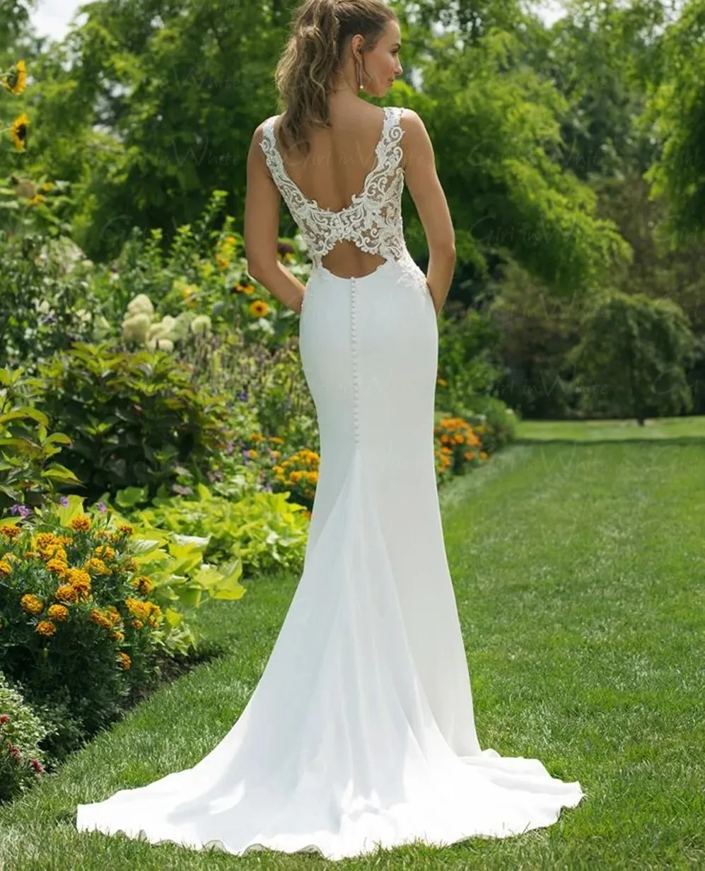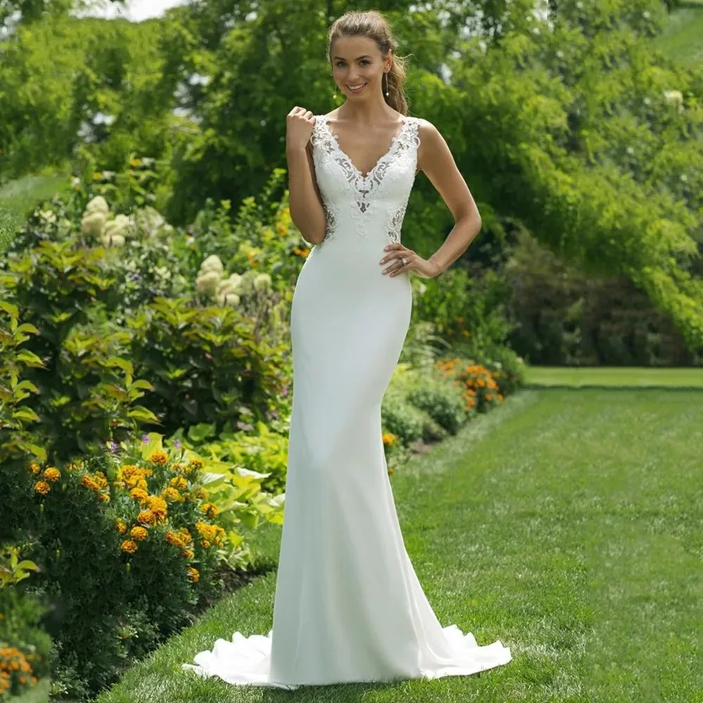 Sexy Bhoho Wedding Dress V-neck Backless Lace Appliques Mermaid Beach Bridal Gowns Boho Garden Vestidos De Noiva