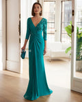 Sexy Deep V Neck Sheath Evening Dress Long Sleeves Bridal Gown For Wedding Pleats Evening Gowns amanda’s novias