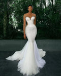 Sexy Mermaid Wedding Dress 2026 Sheer Sweetheart Long Illusion Sleeves Pearls Sequined Tulle Bride Gowns New Vestidos De Noiva