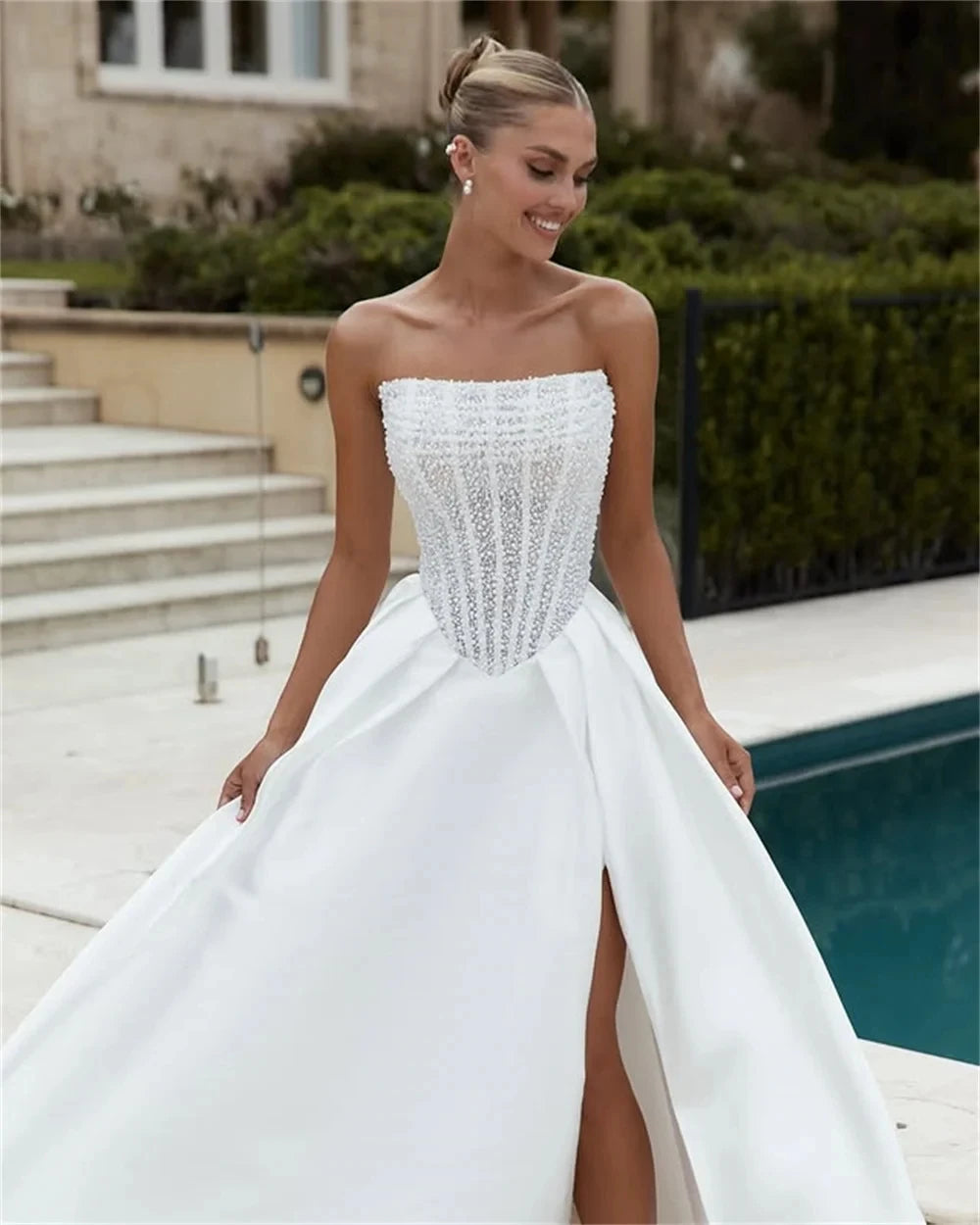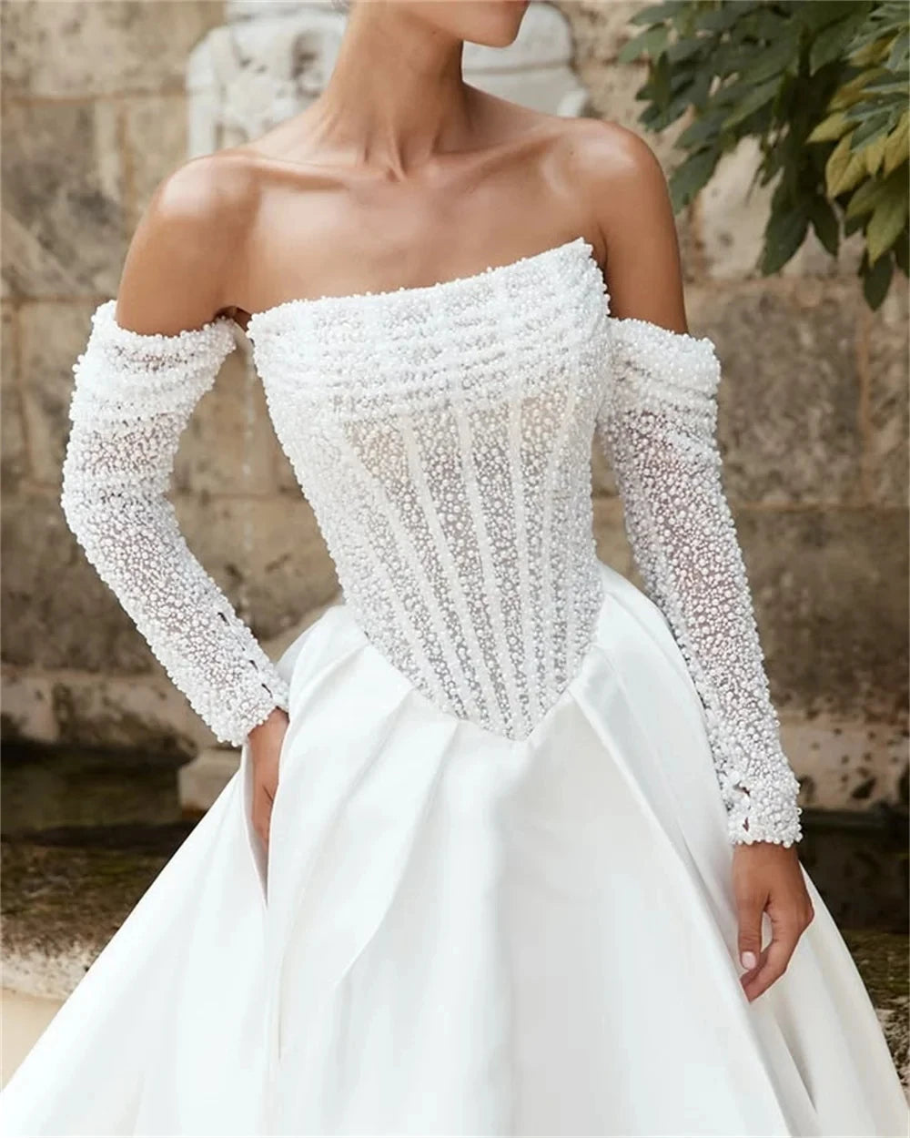 Shiny Beaded Sequined Wedding Dresses 2026 Detachable Long Sleeves Strapless Side Slit A Line Bride Dress Bridal Gowns Vestidos