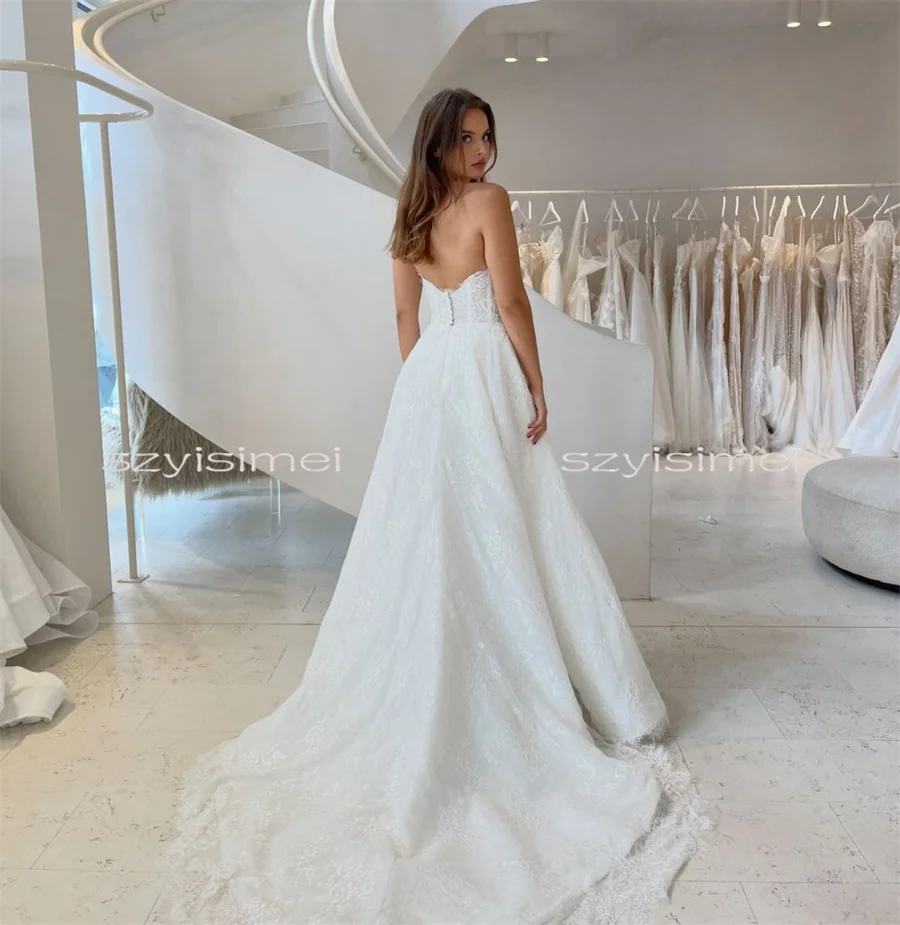 Simple Full Lace Wedding Dress Sleeveless Backless Bridal Gown Sweep Train Customized Evening Gown vestido de novia para boda