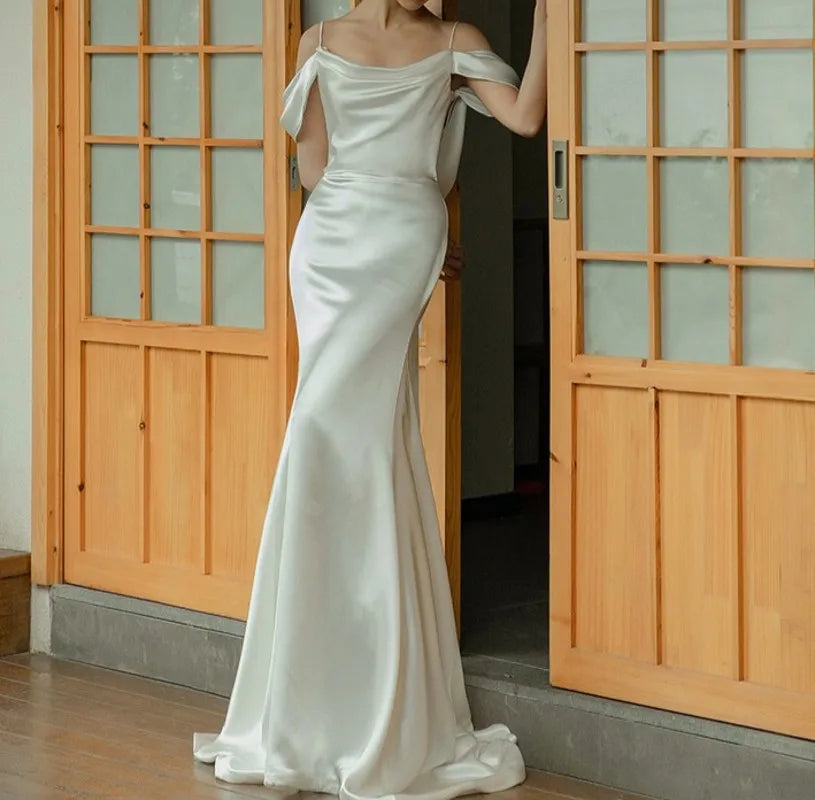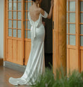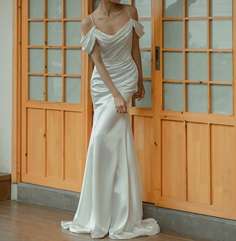 Simple Mermaid Wedding Dress off the Shoulder Straps Pleats Long Satin Princess Bridal Gowns Boho Garden Vestidos De Noiva