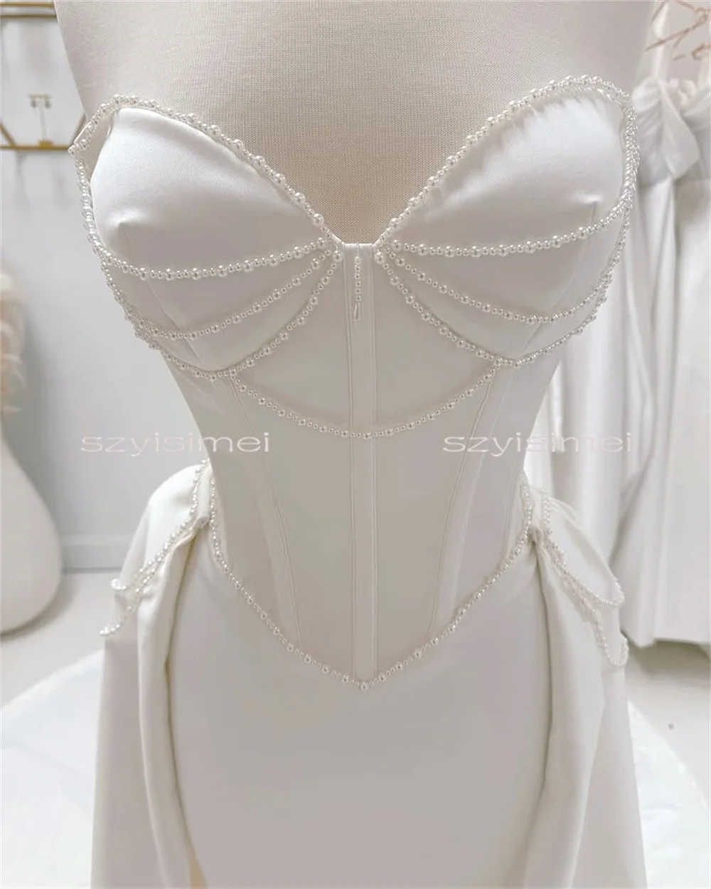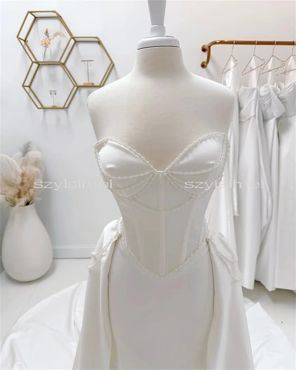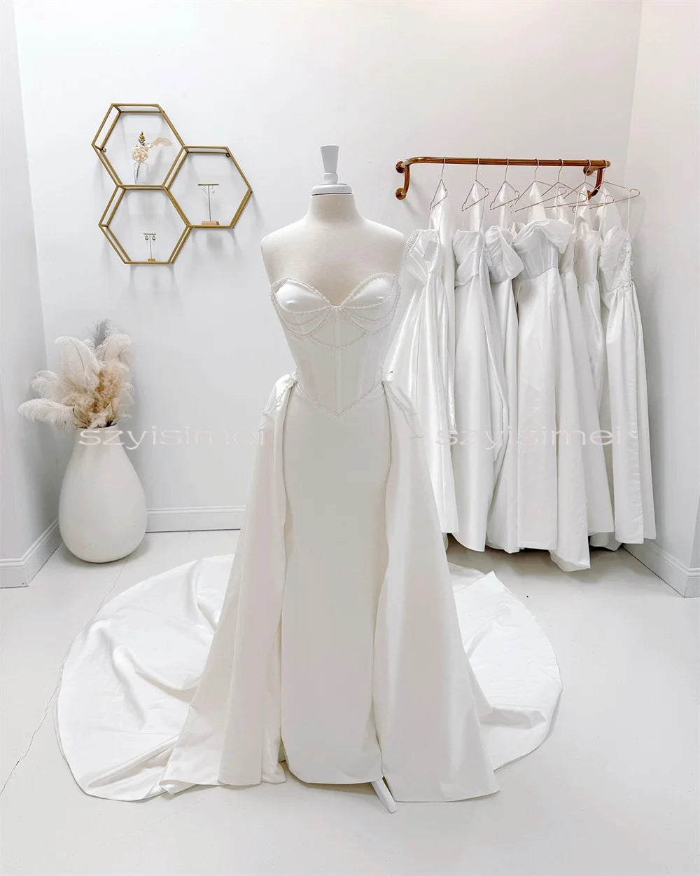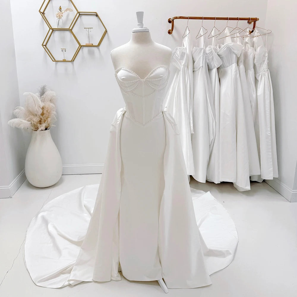 Sweetheart Wedding Dresses With Detachable Train Sleeveless Customized Made Satin Evening Gown Vestido De Noival robe de mariée